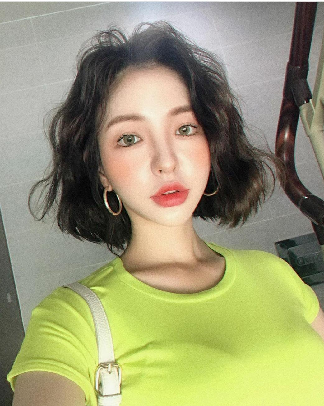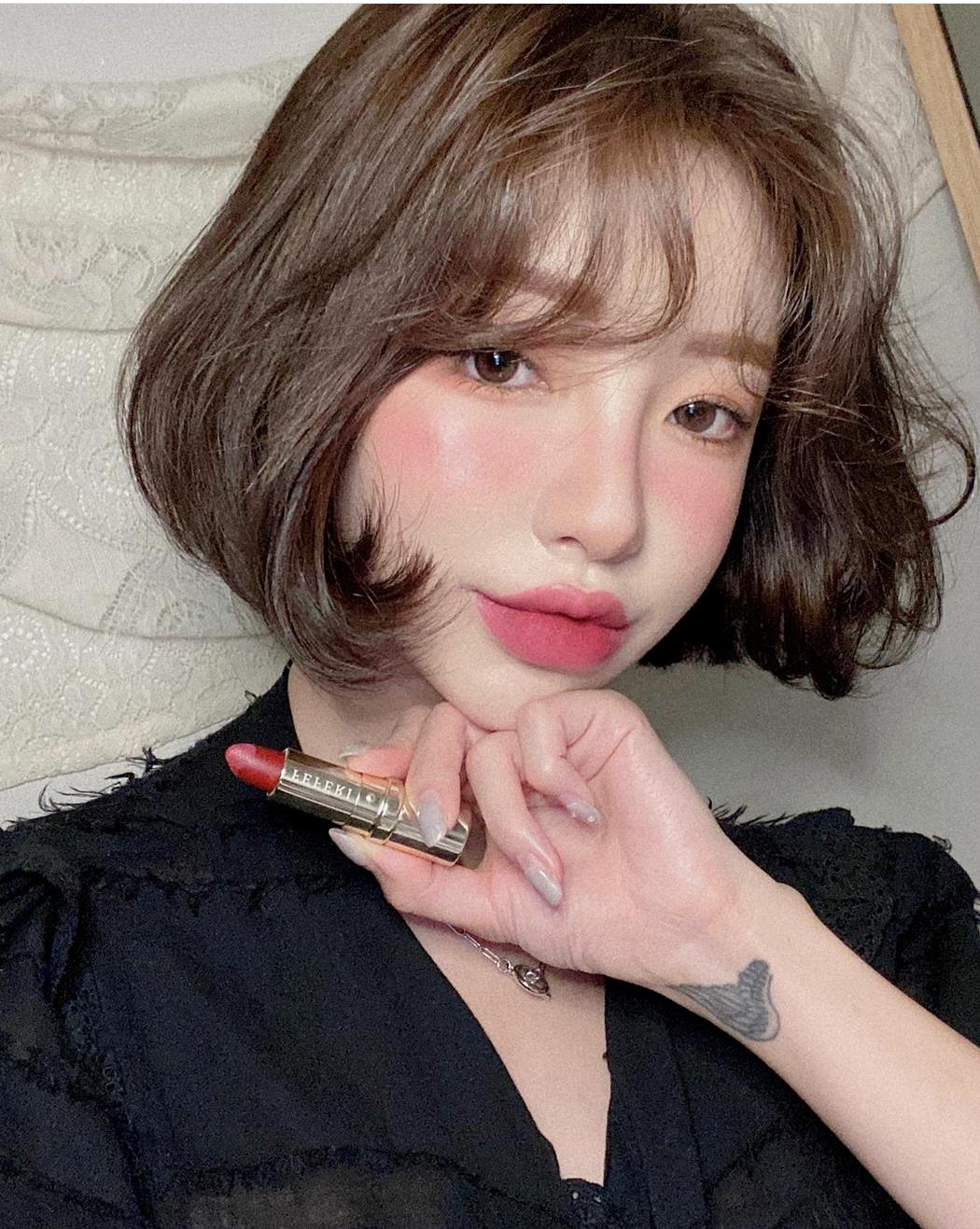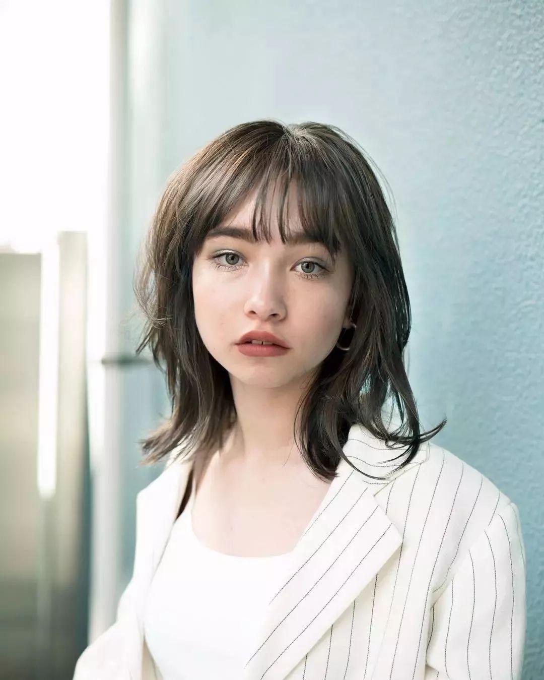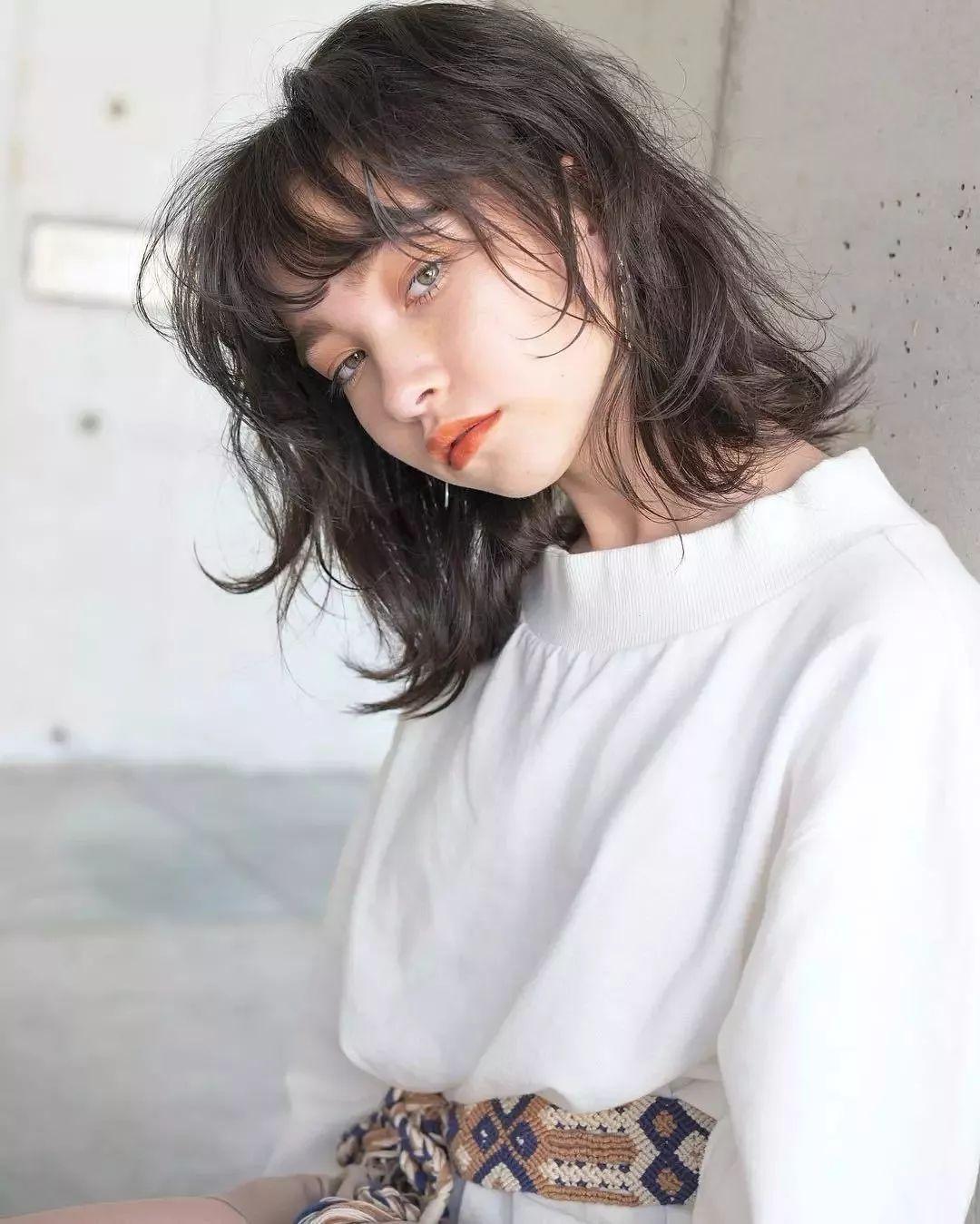 齐肩微卷搭配轻薄的刘海非常修颜,不会显得服帖,带点蓬松感的头发更适合发量少的妹子哦。