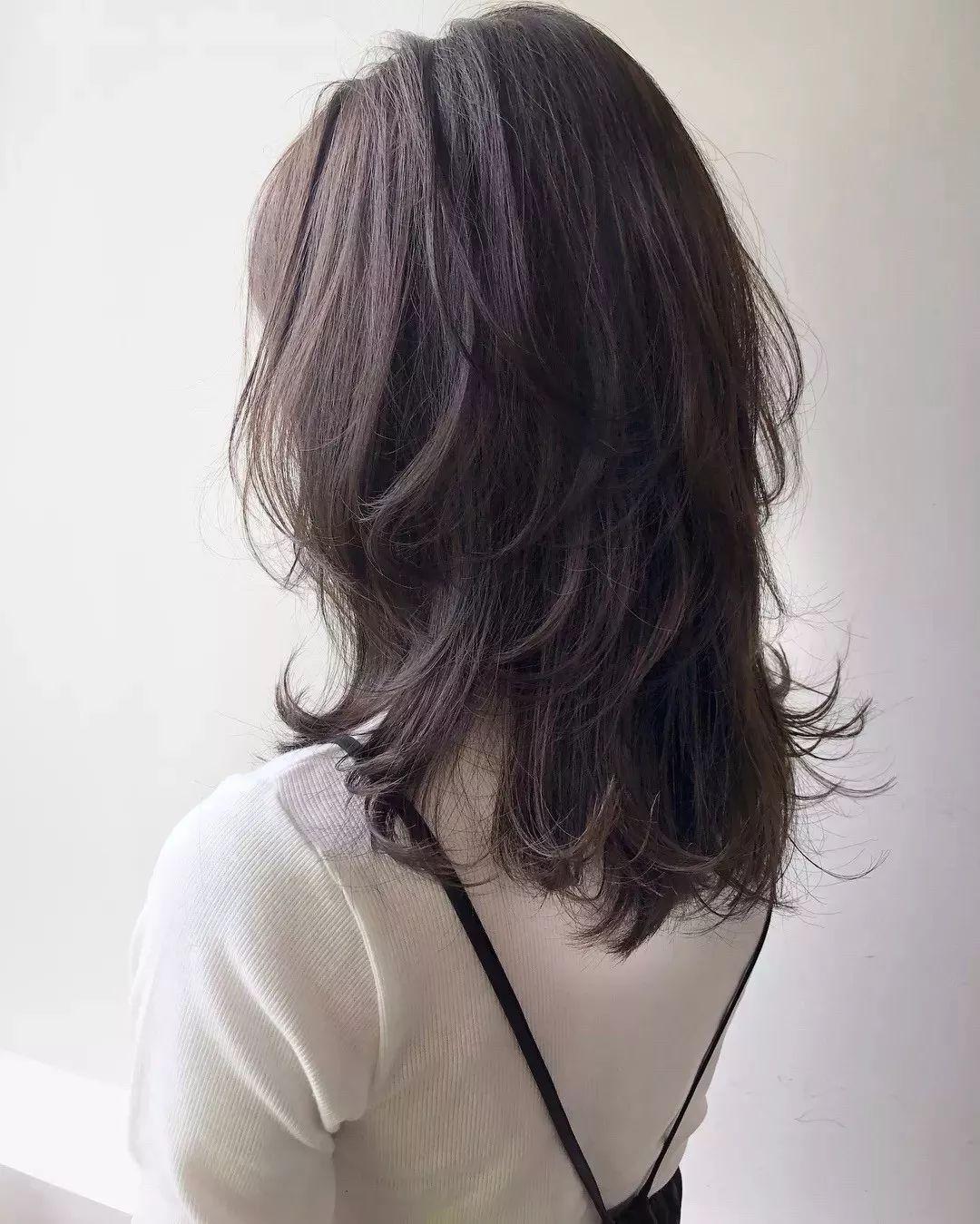 另外发量少的妹子也会更适合有层次感一点的发型,中长发发量少的妹子也很好打理哦。