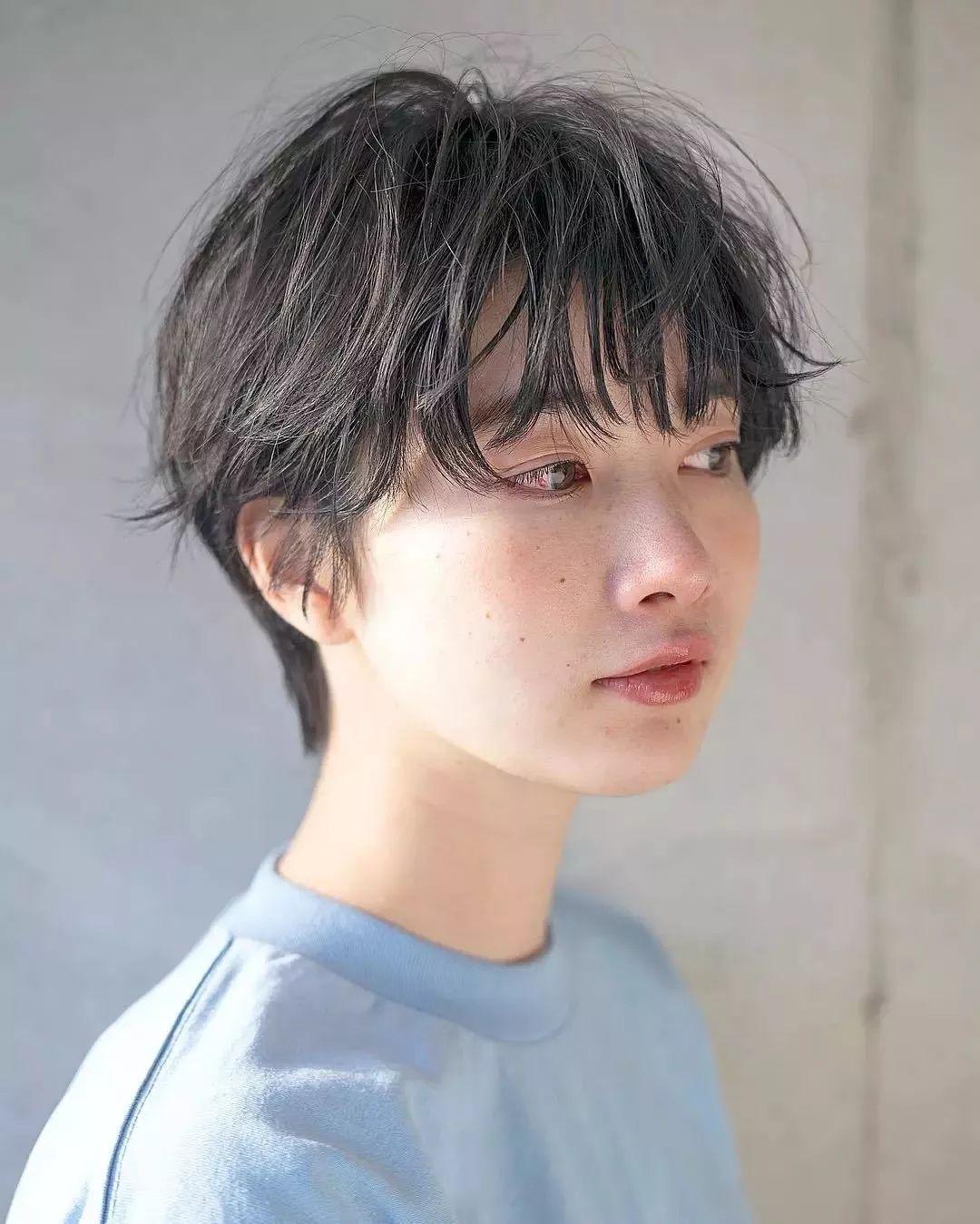 超短发特别适合发量少的妹子,因为本身发质细软如果头发过长会非常的贴头皮,还会显得脸大,短发剪出层次因为发量不多会非常的有轻盈感。