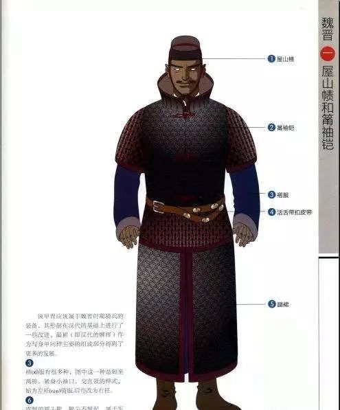 ▲魏晋时期的兵俑,身上的铠甲形制就是”铁盆领“。