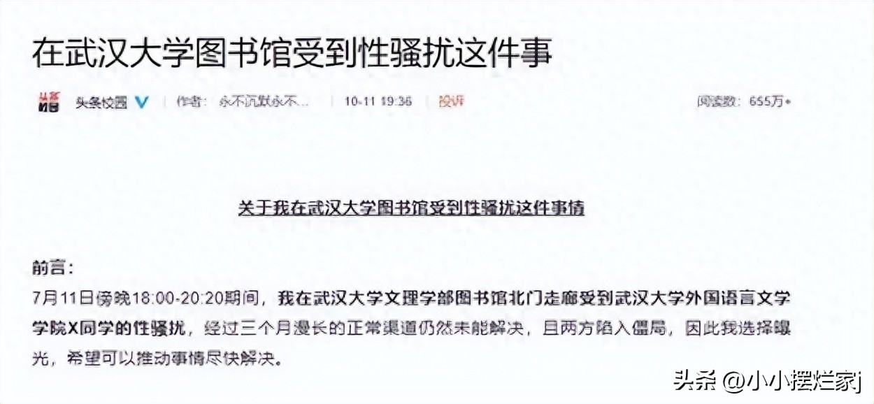 近日,一起关于武大图书馆中男生性骚扰女生的事件引起了广泛关注。这是一起令人震惊的校园事件,涉及到校园安全和文化环境的问题。女生勇敢地站出来曝光这起性骚扰事件,为受害者们打开了一个维权的渠道。我们应该给予她支持和敬佩,并共同努力打击校园性骚扰行为。