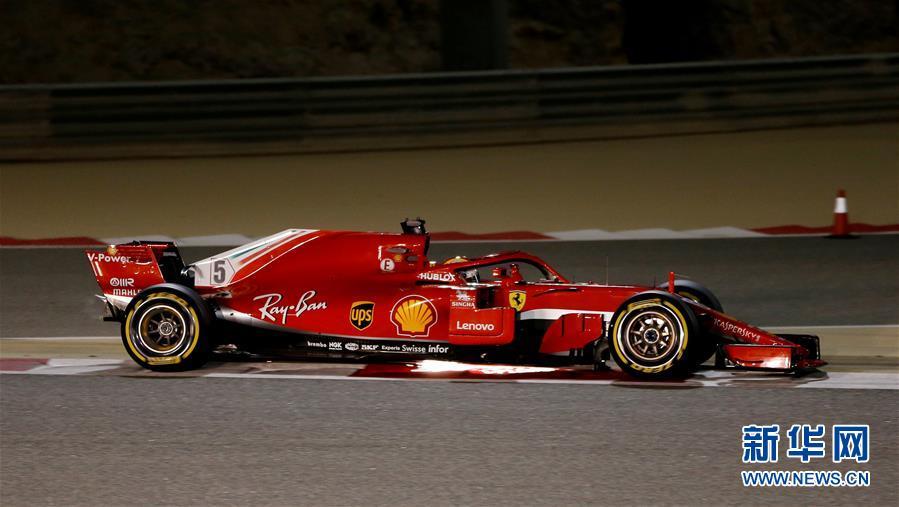 ↑4月8日,维泰尔在比赛中。当日,在巴林萨基尔赛道进行的2018年F1巴林站大奖赛正赛中,法拉利车队德国车手维泰尔夺冠。 新华社/路透