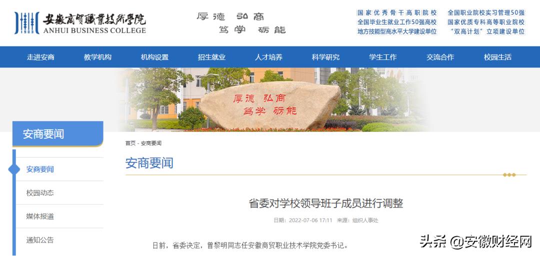 据安徽商贸职业技术学院官网消息,日前,安徽省委决定,曾黎明同志任安徽商贸职业技术学院党委书记。