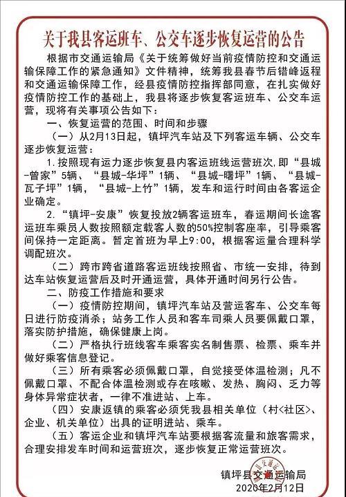 二、从2月15日起,县际客运班线、境内农村客运、通村客运班线安全有序运营。