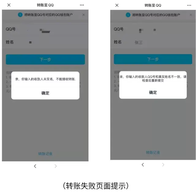 要确保所输入的对方QQ号与真实姓名一致