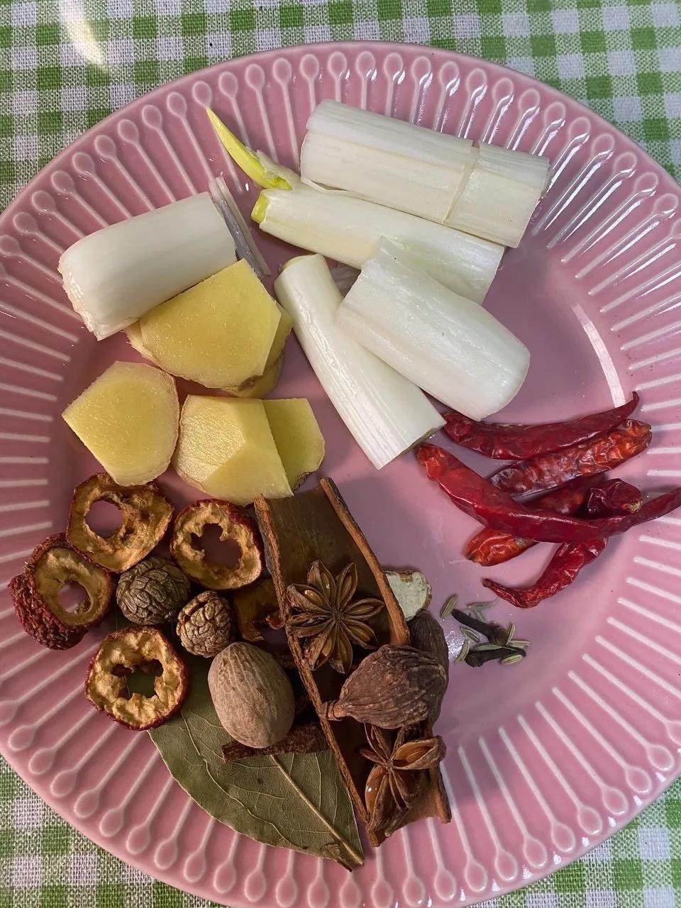 6.放花椒、辣椒、香叶、桂皮等等大料