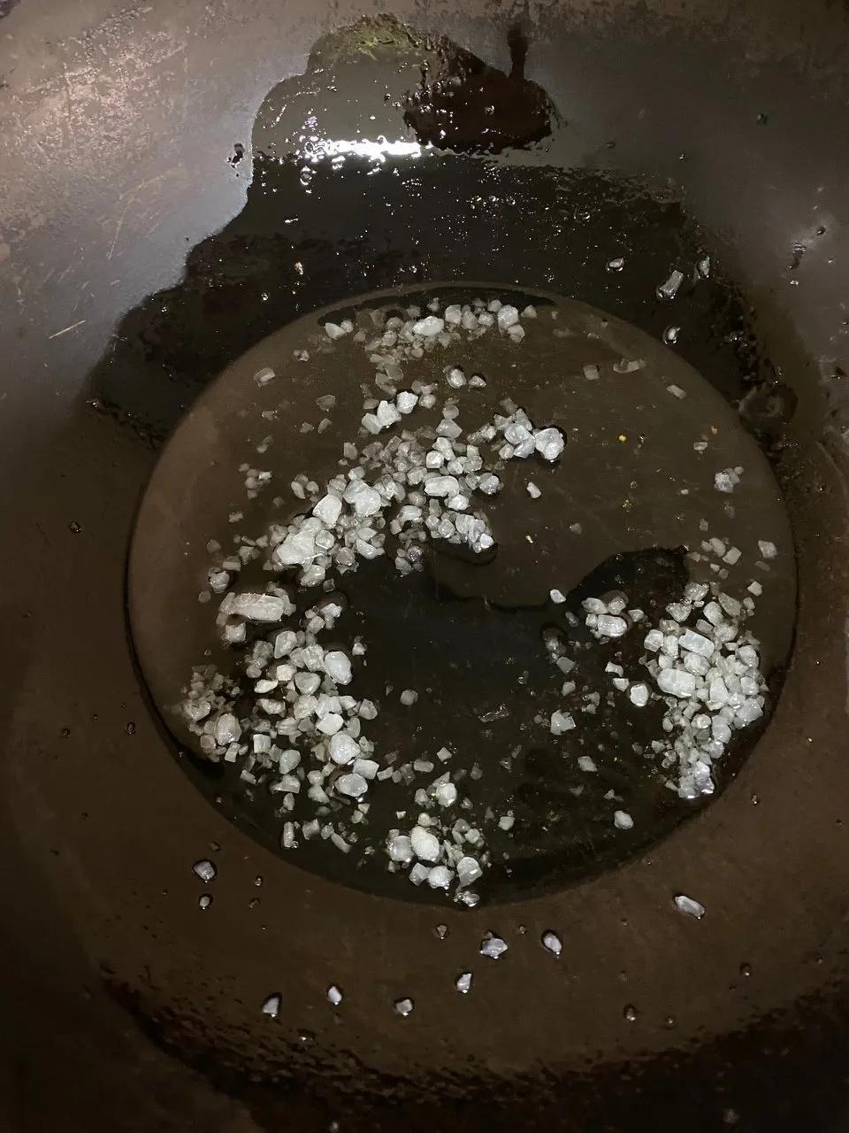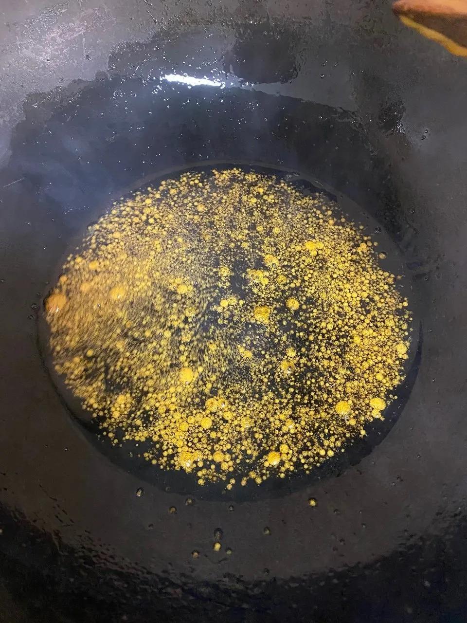 3.锅内放油小火炒冰糖