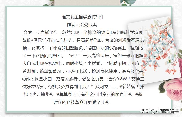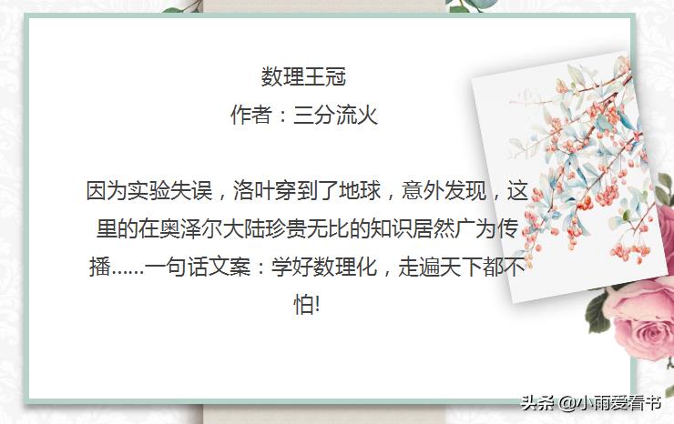嗨喽!大家好,我是小雨爱看书,长年老书虫,向大家推荐一些精彩小说。大家有什么好文或者想看的文都可以在文章下面留言哦。今天为大家推荐女主是学霸文。