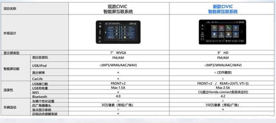 车内的话,全新思域提供纯黑、运动黑以及黑红三种内饰配色可选,中控屏由原先的内嵌式变为悬浮式,并且尺寸也从7英寸升级为9英寸,支持百度CarLife手机互联映射,VTI和VTI-S配置车型后排新增2个USB接口,倒车影像摄像头从30万像素提升到100万像素。