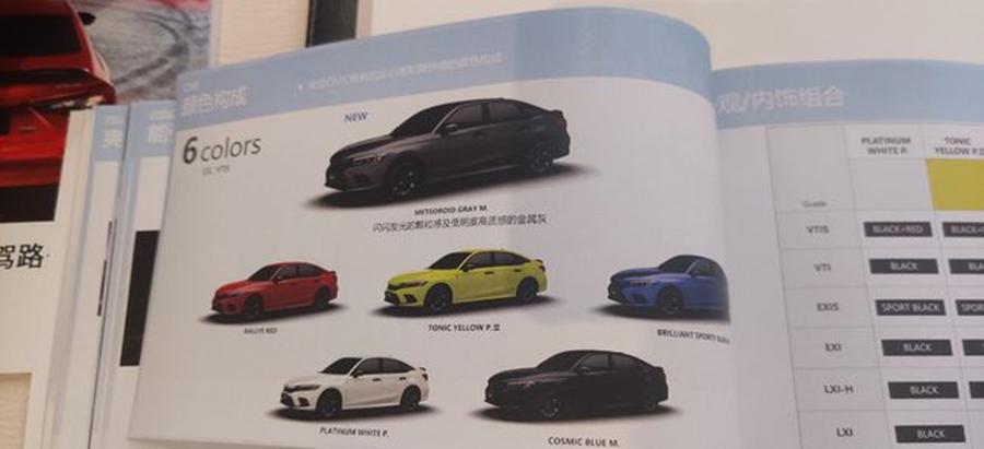 从此次官方发布的信息来看,全新思域将推出6款配置车型,并提供6种外观配色、3种内饰配色以及5种轮毂样式可供选择。具体来看,6款配置车型包括VTIS、VTI、EXIS、EXI、LXI-H、LXI,6种车身颜色包括1种白色、1种黄色、2种蓝色、1种红色以及新增的1种灰色,5种样式的轮毂均为铝合金材质,包括两款16英寸和和三款17英寸。