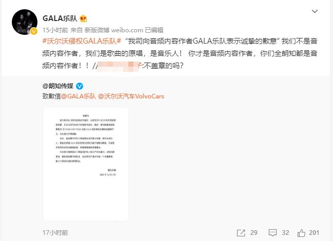 沃尔沃与广告制作商就侵权GALA乐队致歉,网友似乎不买账