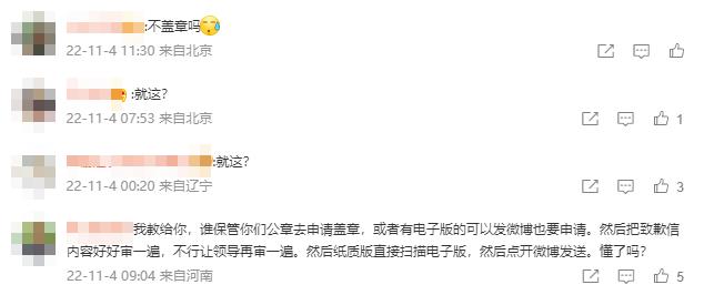 但随后不少网友对该封致歉信没有公章提出质疑。
