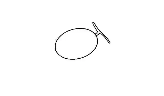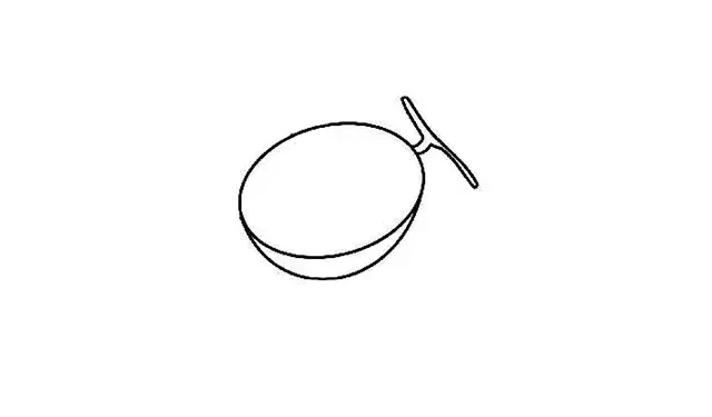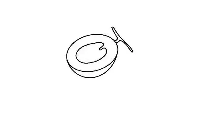 先画一个椭圆(被切开的哈密瓜),这是哈密瓜的轮廓。再在椭圆的一端画上哈密瓜上的柄。