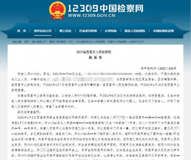 8月30日,四川省西昌市人民检察院公布了起诉书。2000年出生的大学生想要强奸同学的妻子,但被阻止。酒店老板拦住了他,检察官指控他强奸。