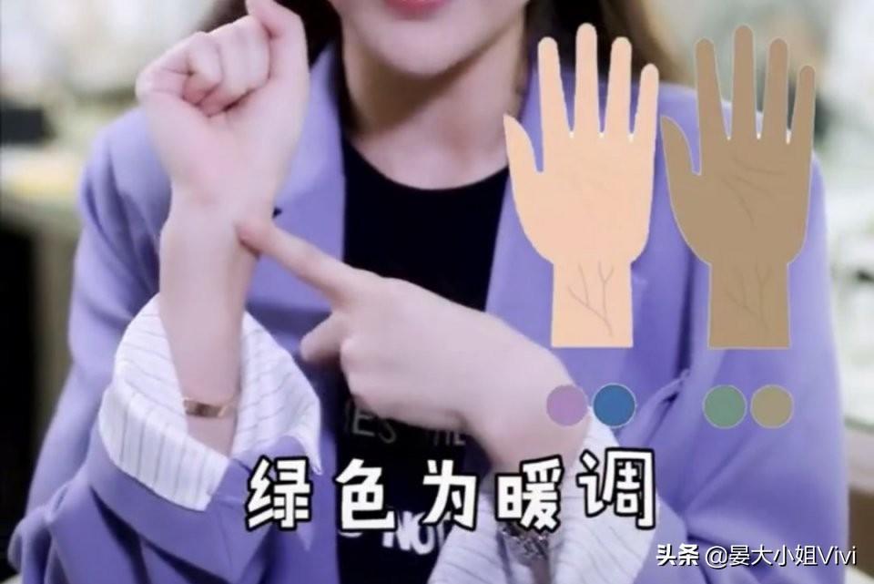 有人问,要是蓝色、紫色、绿色都有,那到底是冷色调还是暖色调呢?如果你的手腕血管呈现出蓝紫绿三种颜色的话,那你就是全世界最嫉妒的自然肤色啦!