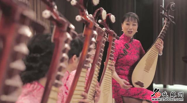 在排练间,盛小云正在带着同学们在排练新节目,他们师生一起将参加省里演出。与传统的评弹表演形式不同,这次同学们是站着弹奏琵琶来表演的。