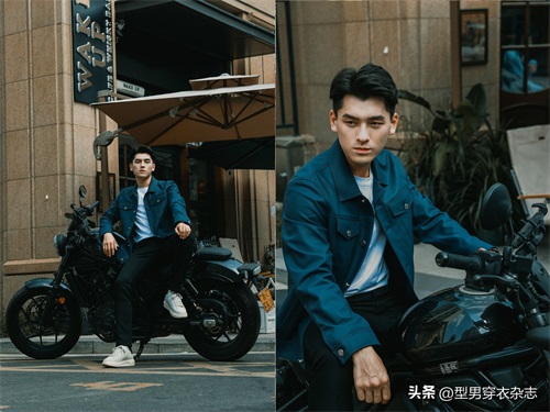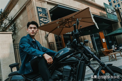 机车少年出街,活力十足有趣味除了黑色皮衣之外,深蓝色的皮衣也非常值得男士们尝试,它既不会像黑色那样普遍,有自己的独特感,也自带沉稳利落的气质,十分好搭配