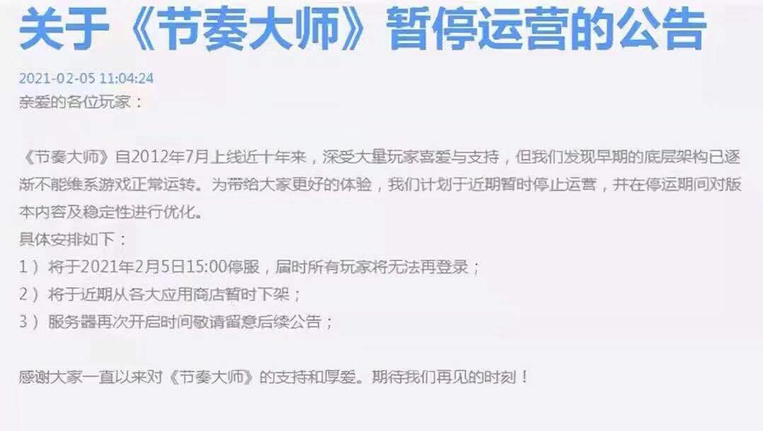 节奏大师突然宣布下架,曾经的年度游戏霸主,直接暂停运营
