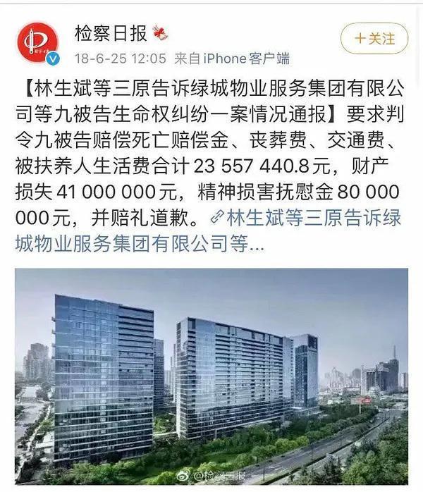 2018年保姆被判死刑,2019年绿城赔偿林先生1.3亿。是的,你没看错,1.3个亿,林先生一跃成为杭州富豪。而此前字字喋血在微博上痛不欲生的林先生,获赔当日与绿城和解,并发微博告知关注他的粉丝此事。