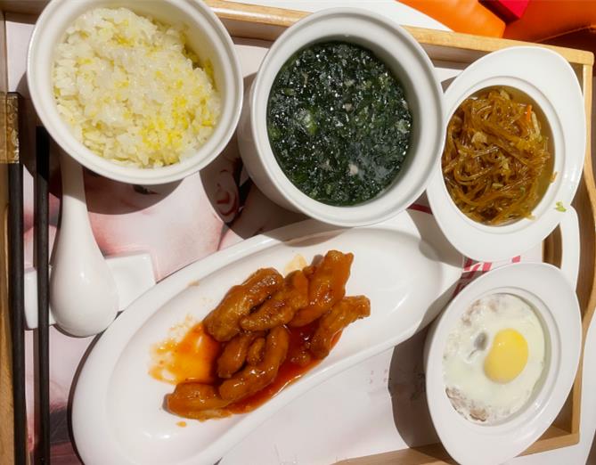 糖醋里脊+紫菜汤+炒土豆丝+肉末鸡蛋羹