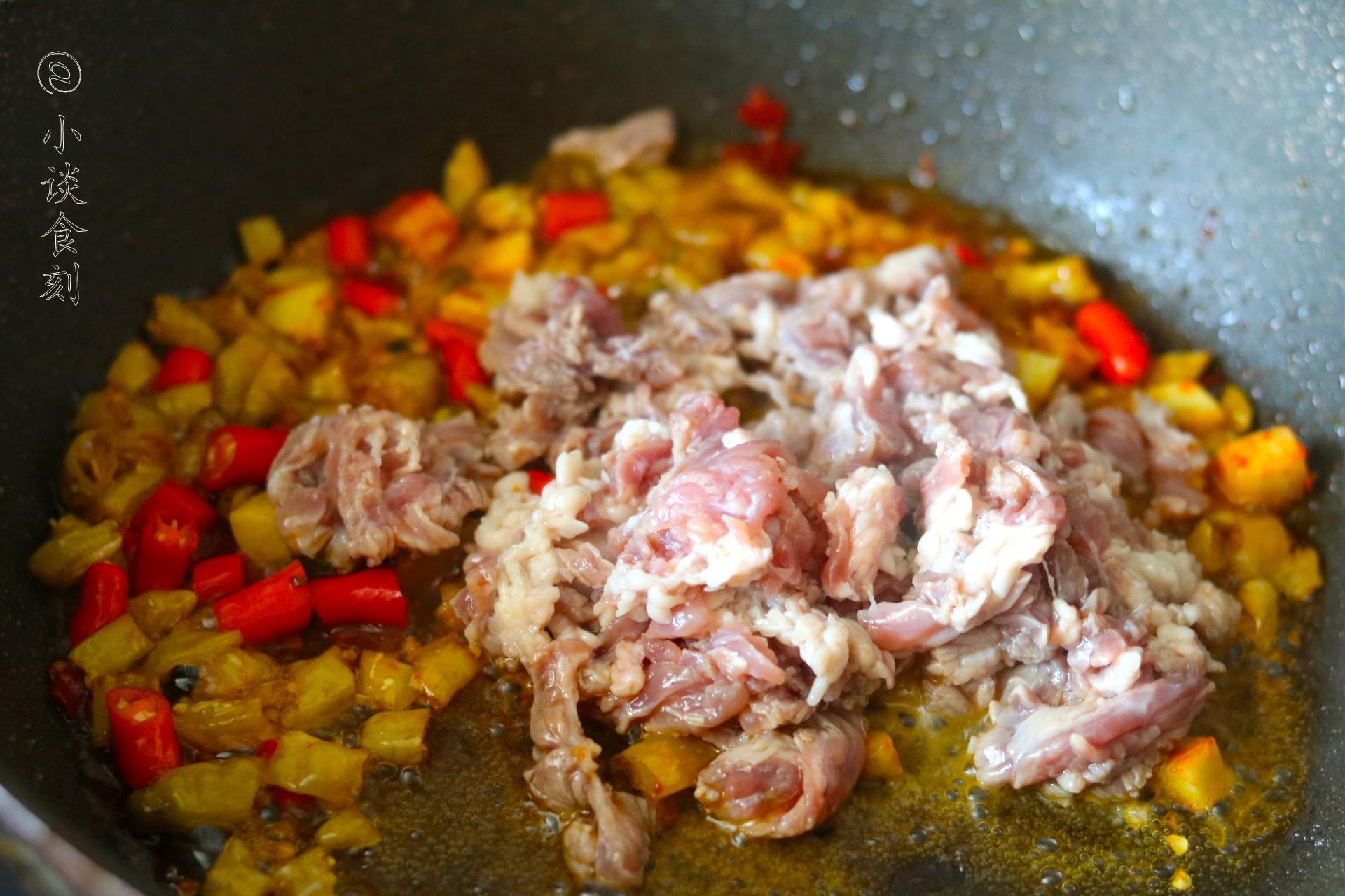 接下来就用牛肩肉,给大家做一道泡椒牛肉末。炒牛肉咬不动,大厨教你3招,牛肉鲜嫩不发硬,学会了做给家人吃。炒牛肉的时候很多人说咬不动,这里告诉你三招,第一,牛肉尽可能的切的细一点,逆着纹路去切;第二,用啤酒去腌制一下,像我炒的是泡椒牛肉,可以使用泡椒水腌制一下,接着把它沥干;第三,炒的时候放点烧酒,可以去腥,还能让它的肉质更软,学会这些,轻松做出美味的下饭菜。