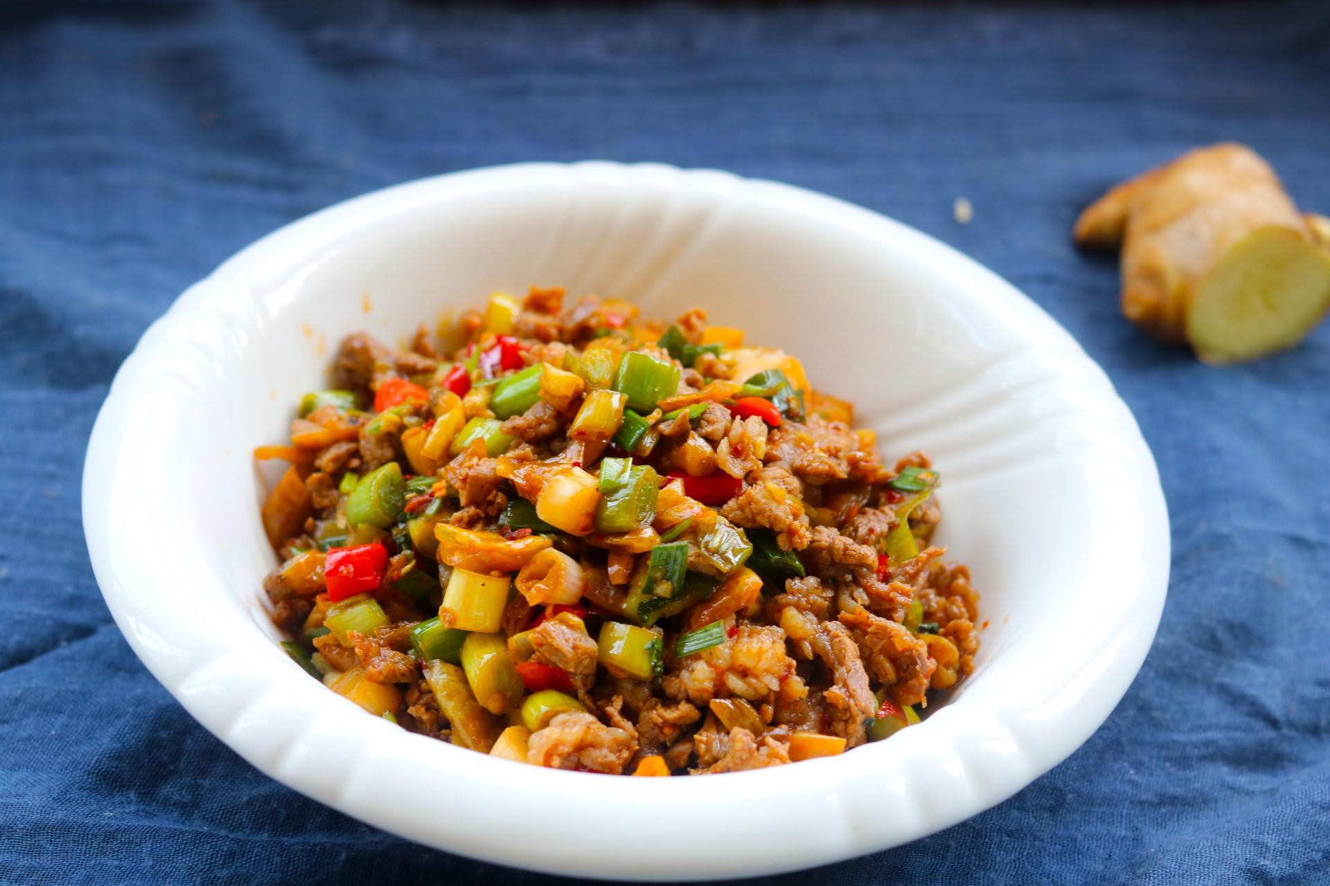6、炒匀炒至入味,一道营养美味的下饭菜,泡椒牛肉末就制作完成了,香辣爽口,特别的开胃下饭。