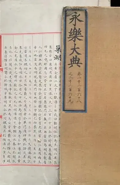 《永乐大典》于明朝永乐年间由明成祖朱棣先后命解缙、姚广孝等主持编纂。遗憾的是原版早已不知去向,现在流传的一版为嘉靖年间抄写的副本全书22937卷,11095册,共约3.7亿字,被公认为史上最大的百科全书。至今为止,仅发现400余册800余卷及部分零页,分散于多个国家和地区公私藏家手中。
