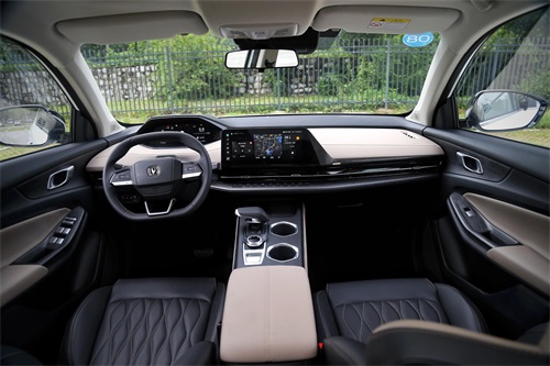 外观方面车身线条流畅、修长,整体给人的观感还是很时尚高级的,内饰部分,车内大部分都采用了软性材料包裹,做工方面缝线很精致细腻,看起来有不错的质感。三辐式多功能方向盘与12寸的悬浮式中控屏,给车内营造了不错的科技氛围。