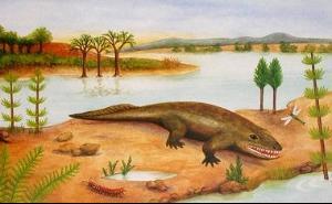 泥盆纪是地球生物界发生巨大变革的时期,生物开始由海洋向陆地大规模进军。泥盆纪早期植物多为形态简单、个体不大的草本类型,如蕨类及有少量的石松类植物。晚泥盆世到来时,裸蕨植物濒于灭亡,石松类继续繁盛,节蕨类、原始楔叶植物获得发展,新真蕨类、种子蕨类和裸子植物开始出现。到泥盆晚期,出现了许多这些植物构成的成片森林,使荒凉的大陆变成绿洲。