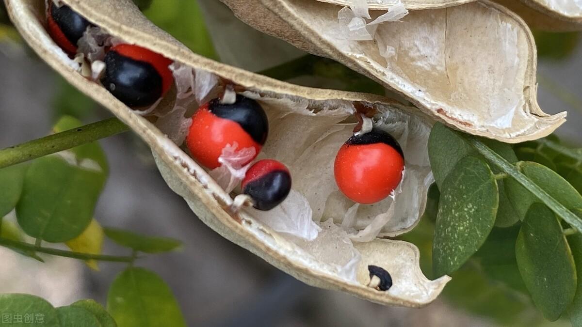 这是一个长相类似于红豆的植物,但他并不能吃,它含有的剧毒,在人们吃了之后,短时间内不会发作,要等几天之后才会觉得有些恶心、昏迷、腹痛、内脏溃烂等状况,最后导致呼吸衰竭,脏器溃烂致死,1g的毒素能导致一千多人死亡。