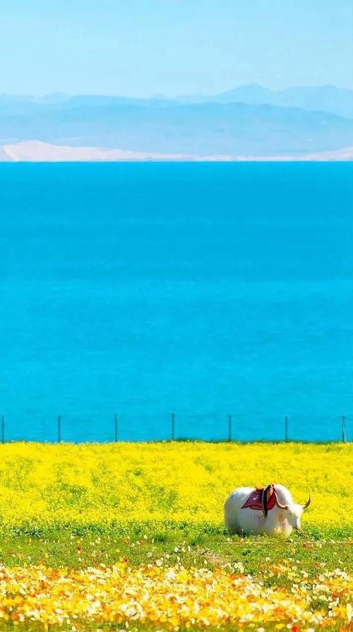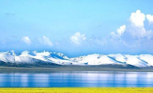 青海湖是我国最大的内陆咸水湖,它波澜壮阔,清澈如镜是大自然给我们的宝物,在7,8月的气温最高也不过二十多度,而且田野的油菜花和高山的野花争先绽放和周围的群山形成一副美丽的画面。