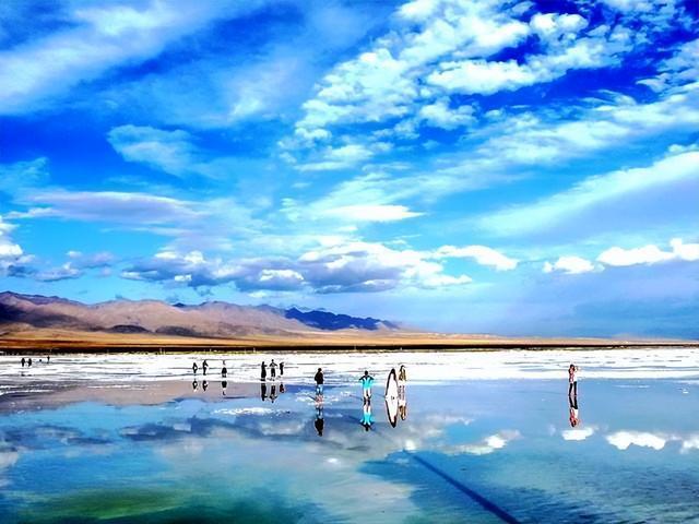 茶卡盐湖位于青海省蒙古族藏族自治州的茶卡镇,面积大约100平方公里,海波三千米,它被《中国国家地理》评为“一生五十五个必去之地”,享有“天空之境”,中国的“玻利维亚”等美称。