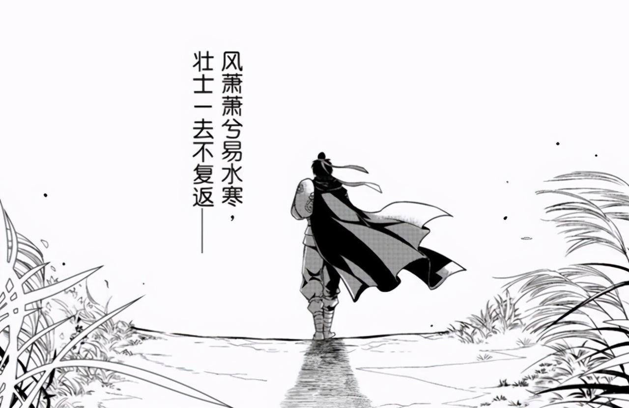 等荆轲上路,太子丹这小子也挺有意思,叫了一群人穿着孝服为荆轲送行,还唱歌,什么“风萧萧兮易水寒,壮士一去兮不复还”。意思是你这次就肯定得死了,我们提前把葬礼给你办了,你安心吧。