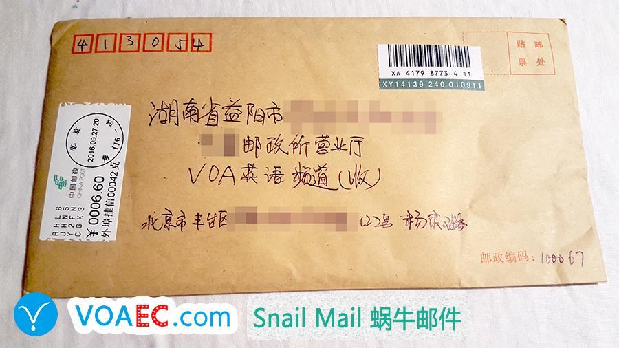 小V我(VOA英语城)用寄平信的方式给我女朋友发了一封情书。