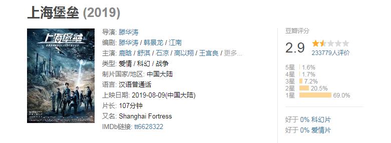 但是当我看到《上海堡垒》的前期宣发主打的居然是科幻的时候,我的心已经凉了半截。我心里安慰自己,说不定能像《流浪地球》一样,给人惊喜呢,毕竟江南亲自出任编剧来改编,作为粉丝还是要有信心的。然后就传出了3亿的制作费用,鹿晗和舒淇两个人片酬就占了一半多。