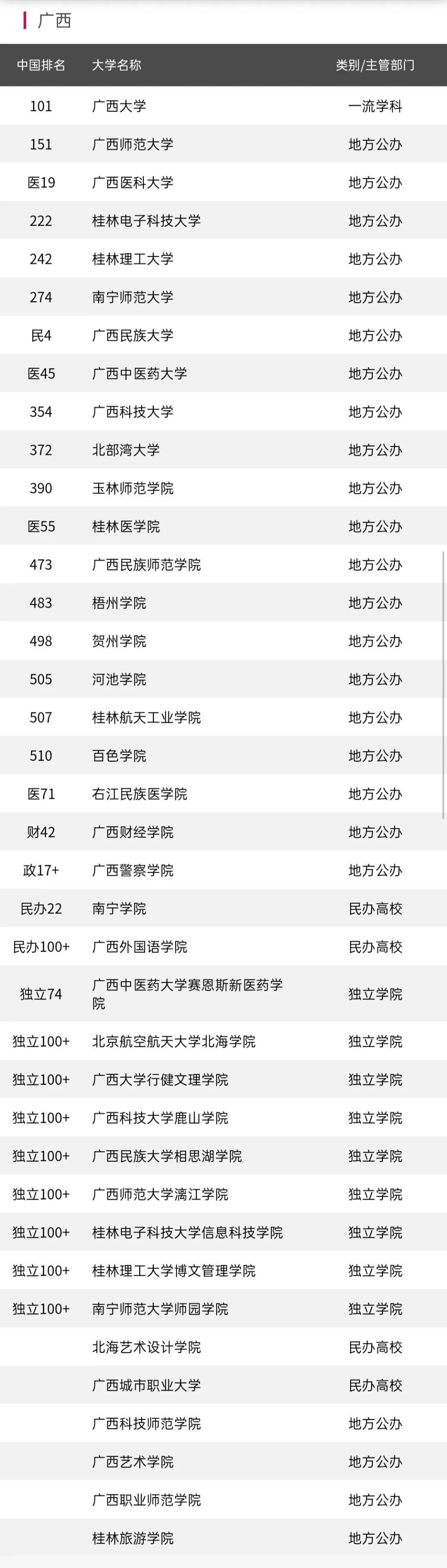 广西38所高校排名!“广西医大”进前3甲,看前10强是哪所?
