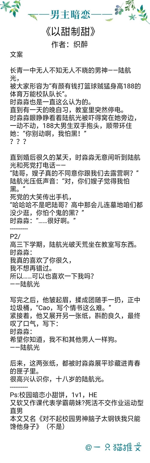 喜欢校园小甜饼的快入手,文笔朴实,剧情日常,不是那种尴尬中二的校园文。女主是语文课代表,男主是体育生日常训练,尤其不爱交语文作业,女主每天跟催债一样要男主交作业。男主暗恋,写个周记都能写成情书,但女主心里只有学习,直男男主拒绝别的女生毫不留情,看的时候嘴角忍不住上扬的那种感觉!!
