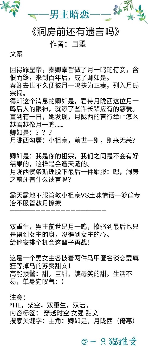 男女主双双重生到各自的后人身上,前世两人是政敌,后来女主得罪皇帝被赐婚给男主做妾。前世的男主其实很早就喜欢上女主了,可女主并不喜欢他,由于两人立场不同,男主做了很多事不能让女主知道,所以有些误会到女主死都没有解开。