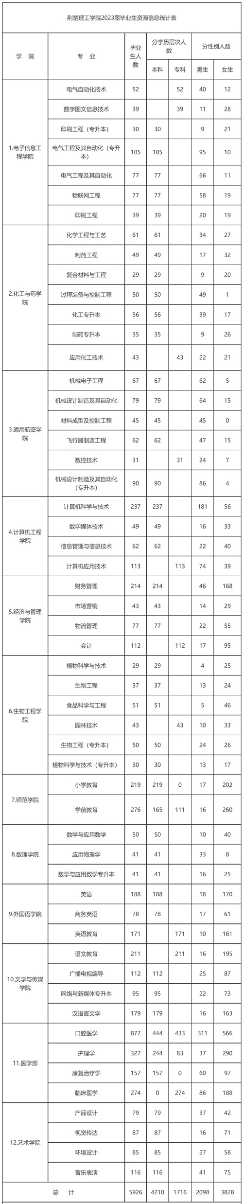 第三,还要看看2023届毕业生的专业分布。这个倒是简单,我们看看荆楚理工学院2023届毕业生资源信息统计表上的有关数据就行了。