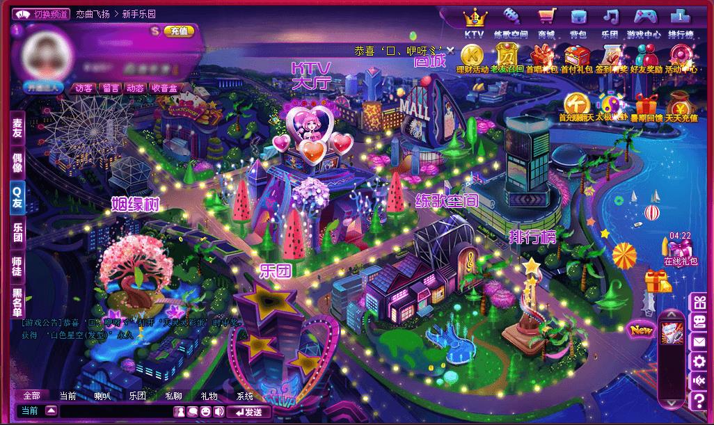 系统介绍(KTV大厅、练歌空间、商城、排行榜、姻缘树、乐团)