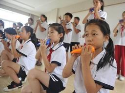 6月28日,济南轨道交通集团、齐鲁晚报齐鲁壹点、齐鲁志愿者为解决乡村儿童乘坐校车费用,特举办“小蓝爱心义卖,让家更近”公益活动,活动来到长清归德国庄小学,孩子们现场用陶笛演奏了一曲《风动草》,好听到爆。